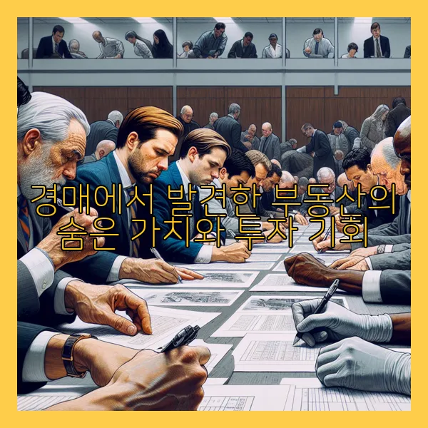 경매에서 부동산의 숨은 가치를 발견하는 것은 여러분에게 특별한 투자 기회를 제공할 수 있습니다. 많은 이들이 경매를 통해 저렴한 가격에 매력적인 부동산을 구매하고 있는 이유는 그 안에 숨겨진 가능성을 찾기 때문입니다. 그러나 경매 부동산에 대한 매력을 제대로 이해하고, 지역 및 시장분석을 잘해야 성공적인 투자가 가능하다는 점을 잊지 말아야 합니다. 이번 포스팅에서는 경매 과정에서 유의해야 할 사항과 효과적인 투자 전략을 공유하겠습니다. 부동산 투자에 대한 여러분의 이해가 깊어지길 바랍니다.